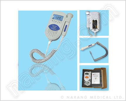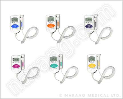 Doppler can meet routine examination requirement of obstetricians, midwives, and pregnant women. It is a high performance model with FHR digital LCD display. It has three heart rate processing modes: real-time FHR display mode, averaged FHR display mode and manual mode. Both of the models have audio output, and can connect with earphone or recorder with audio input. It has a slim, power saving and interchangeable ultrasound probe.